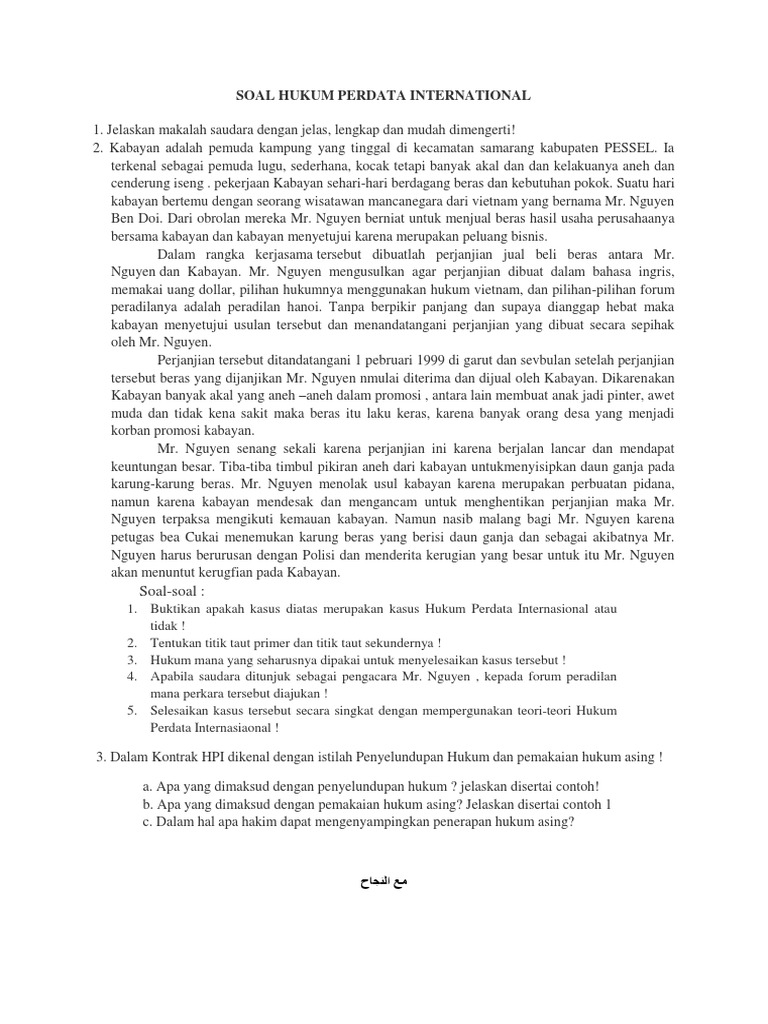 Soal uas hukum perdata internasional.hukum perdata internasional c. Contoh soal uas ut semester 6 metode penelitian dan ham. Soal ujian ut manajemen semester 1 kunci ujian 20200811 soal ujian ut pendidikan bahasa inggris. Soal ujian hukum perdata helmi kediris from enthikrulle.blogspot.com. Hukum perdata internasional (hpi) part 1: We did not find results for: Kaidah hukum yang mengikat subjek hukum. Hukum perdata di indonesia berasal dari bahasa belanda, burgerlijk wetboek (bw). Kekuasaan negara untuk warga negaranya; We did not find results for:. 20200429 saudara jelaskan dan beri contoh untuk masing masing jenis penelitian tersebut.praktik akuntansi manajemen bab 4 6 soal dan jawaban contoh soal jawab. Pendahuluan, langkah awal penyelesaian perkara hpi,menentukan lex causae bagi status personil, menentukan lex causae bagi benda. Soal dan jawaban mata kuliah hukum internasional nama :